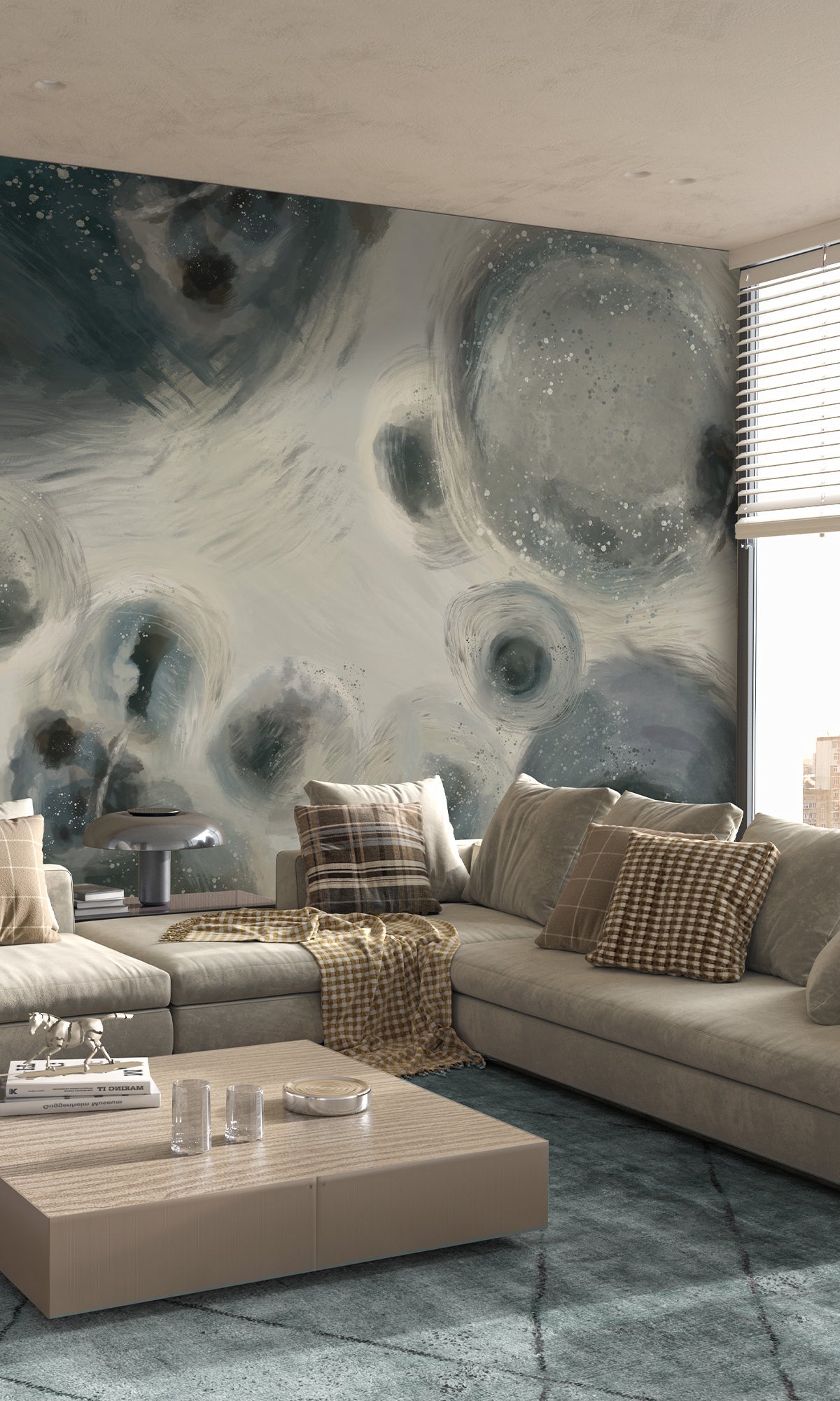 Let your walls tell a story with this dreamy digital mural, an impressionist take on bubbles drifting across the water's surface. Soft, fluid forms create a sense of quiet movement and mystery, adding depth and intrigue to your space. Whether you're designing a serene retreat or a creative escape, this mural brings an artistic touch that feels both calming and captivating. Available in six premium materials and fully customizable to fit your style and space perfectly.