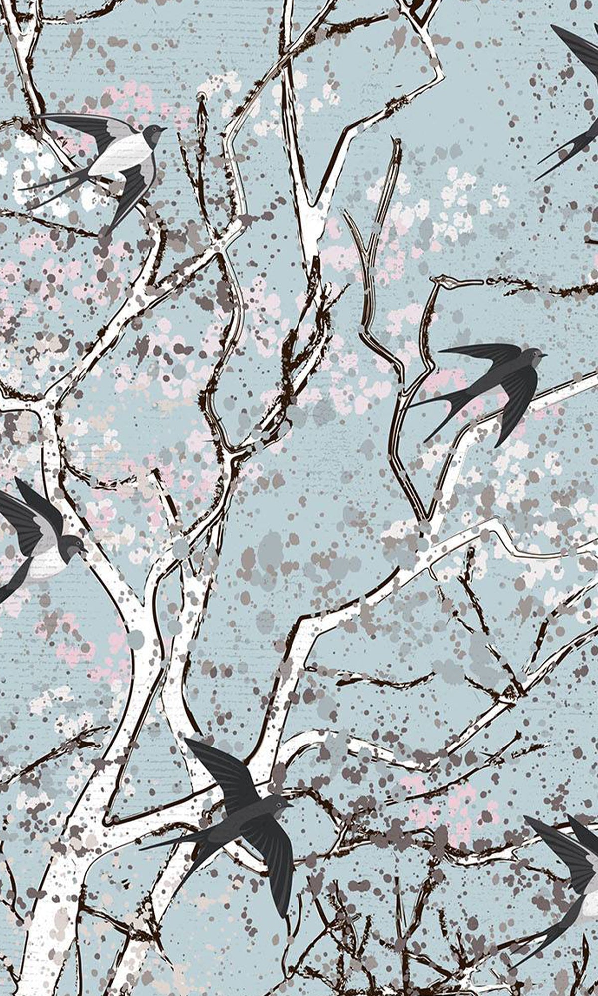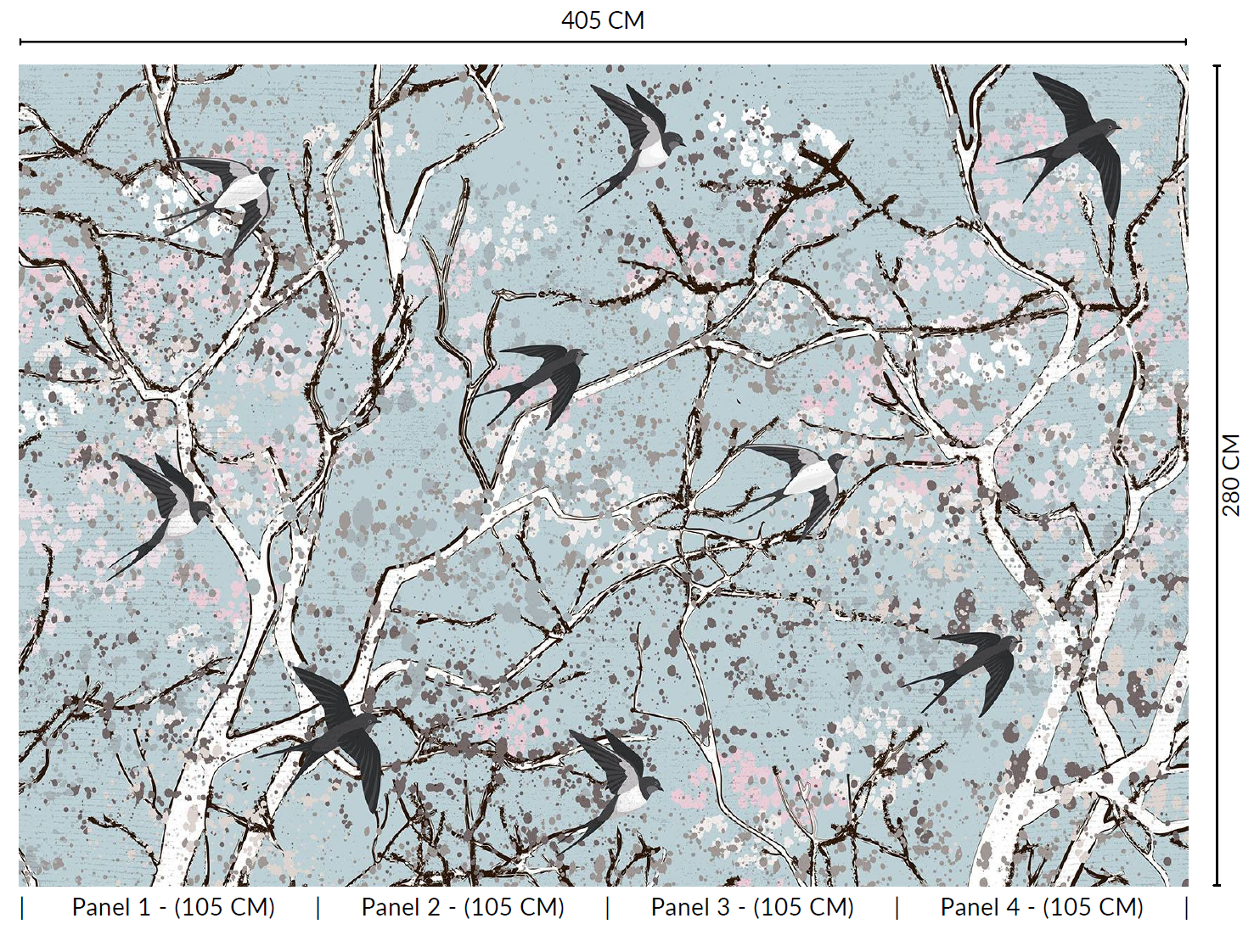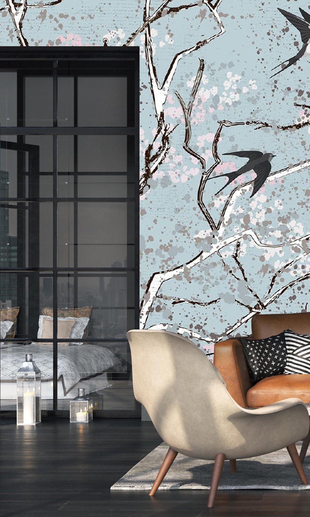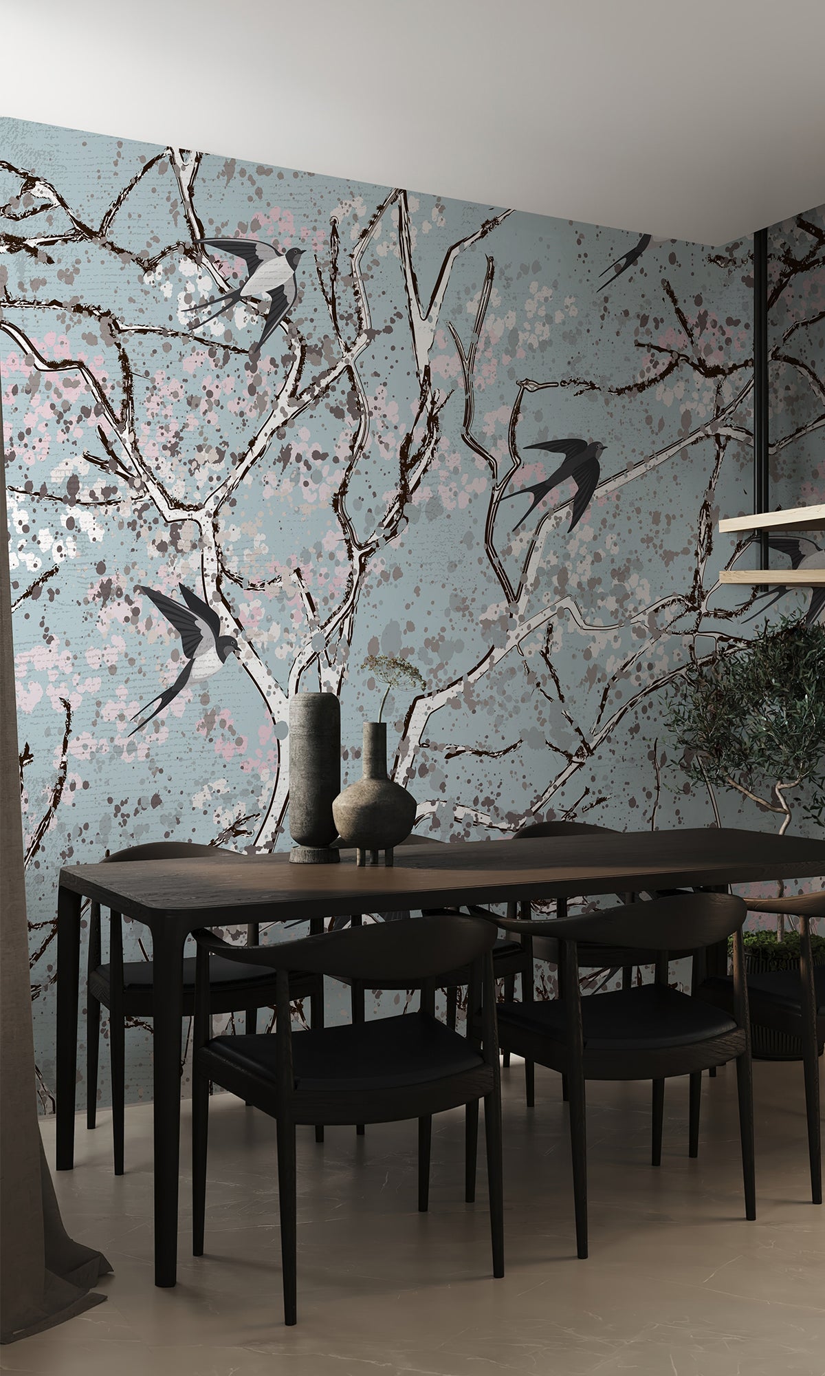 Instill a feeling of tranquility and soft liberation in your environment with this calm digital mural, showcasing a delicate arc of swallows settling amidst blossoming sakura trees. The gentle flowers and graceful flight of the birds generate a soothing, bright environment that enhances the ambiance of any space. Available in your selection of six high-quality materials and entirely adjustable to match your taste and environment, this unique mural serves as a lovely reminder of nature's serene moments and the happiness found in tranquility.