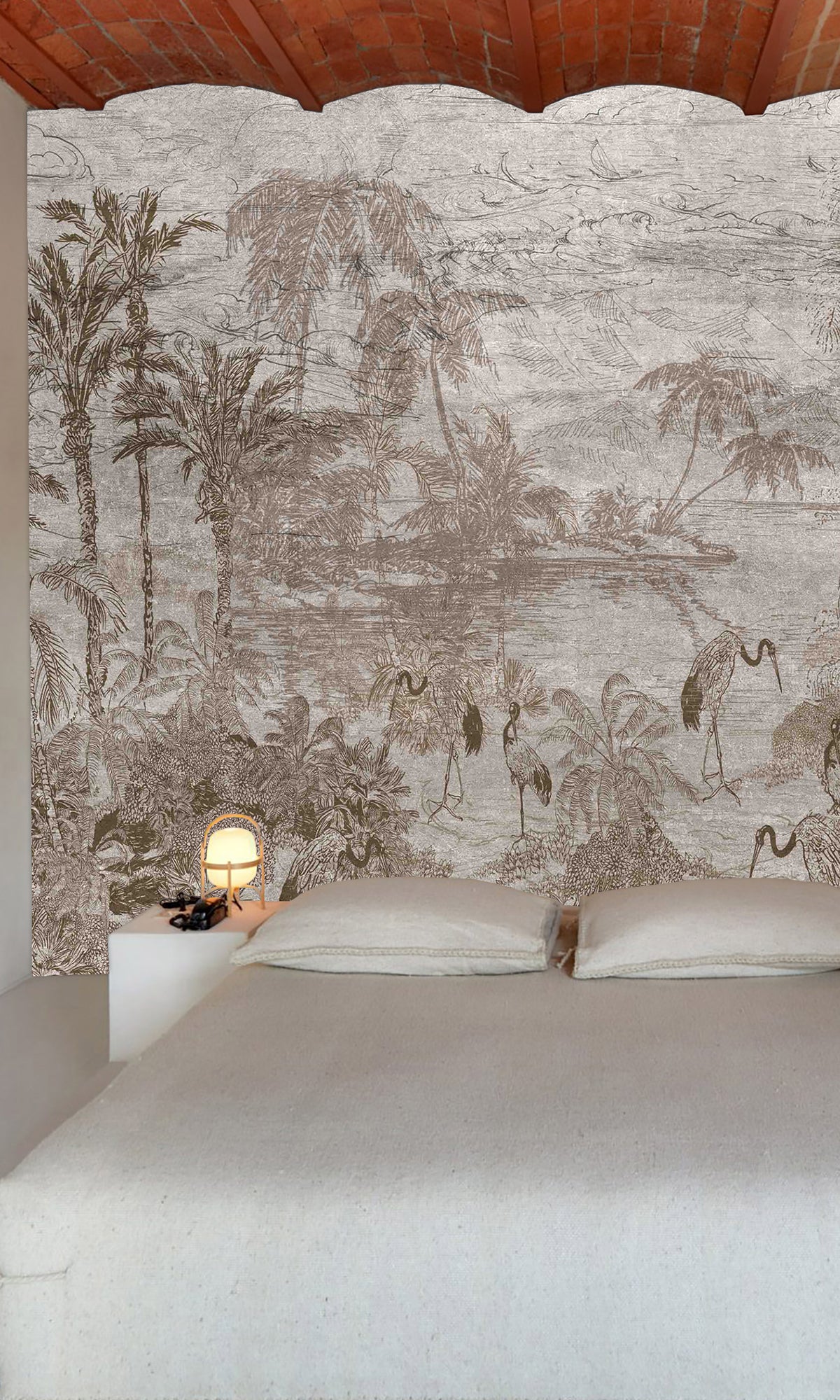 Add an element of elegant tropical allure to your walls with this stunning digital mural, showcasing a Chinoiserie-style illustration of elegant flamingos by a tranquil beach. The design merges organic elegance with refined craftsmanship, producing a classic impression that seamlessly enhances any space. Whether you want to introduce a gentle touch of color or a striking centerpiece, this mural achieves an elegant and serene balance. Produced on six high-quality materials and completely adjustable to your tastes, it's a unique method to enhance your area with timeless elegance and organic charm.