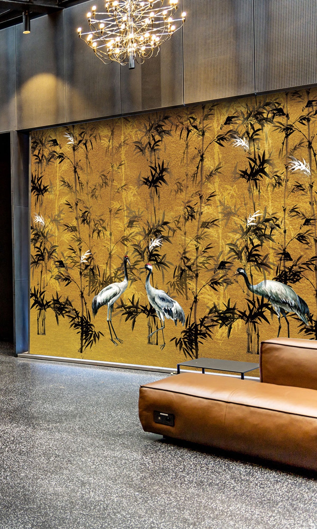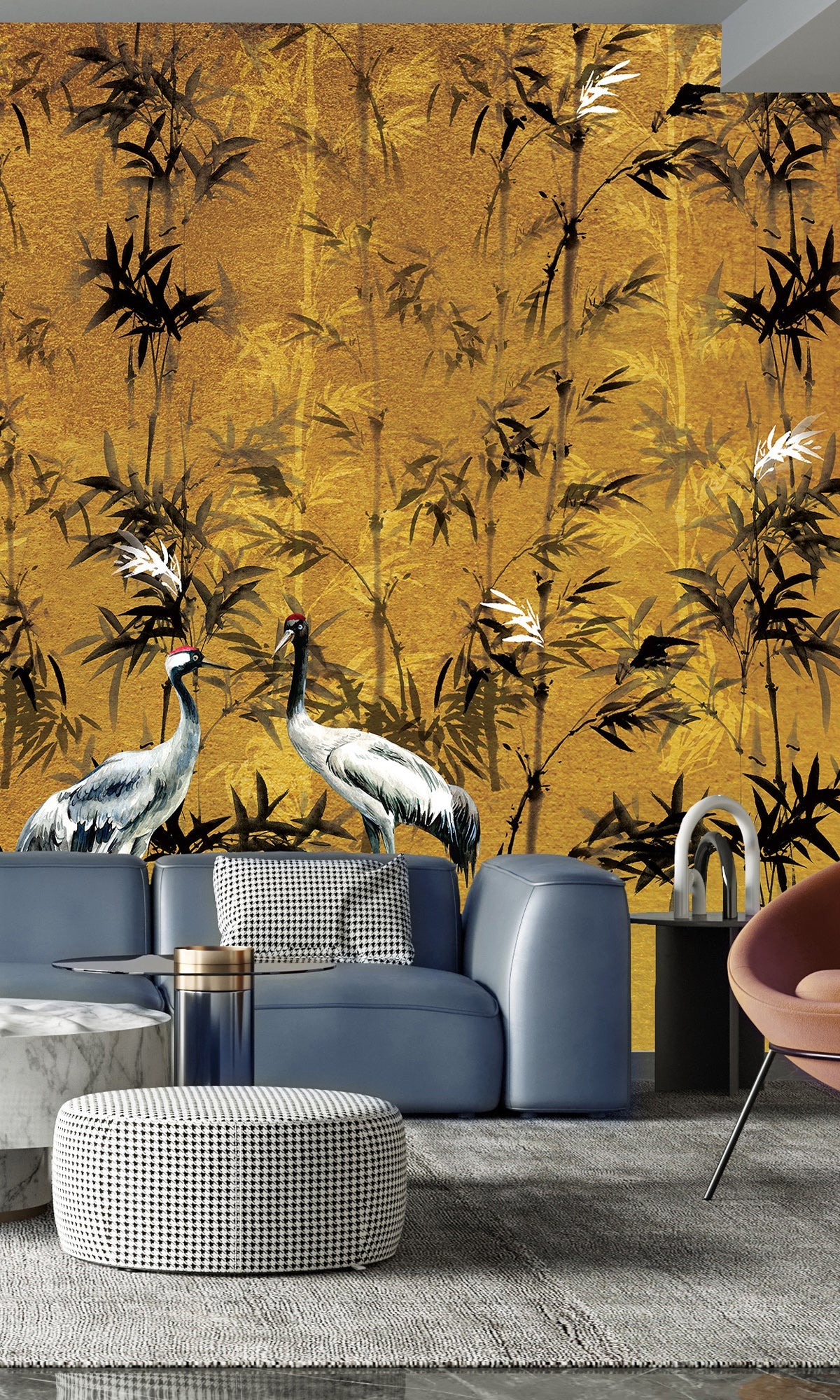 Step into timeless elegance with this standout piece from our exclusive high-end digital mural collection. Featuring graceful tropical birds wandering through a serene bamboo forest bathed in a soft golden glow, this design channels the refined beauty of classic Asian imperial style. It brings a warm, sophisticated ambiance to any space. Plus, it's fully customizable and available in six premium materials, so you can tailor it perfectly to your unique style and setting.