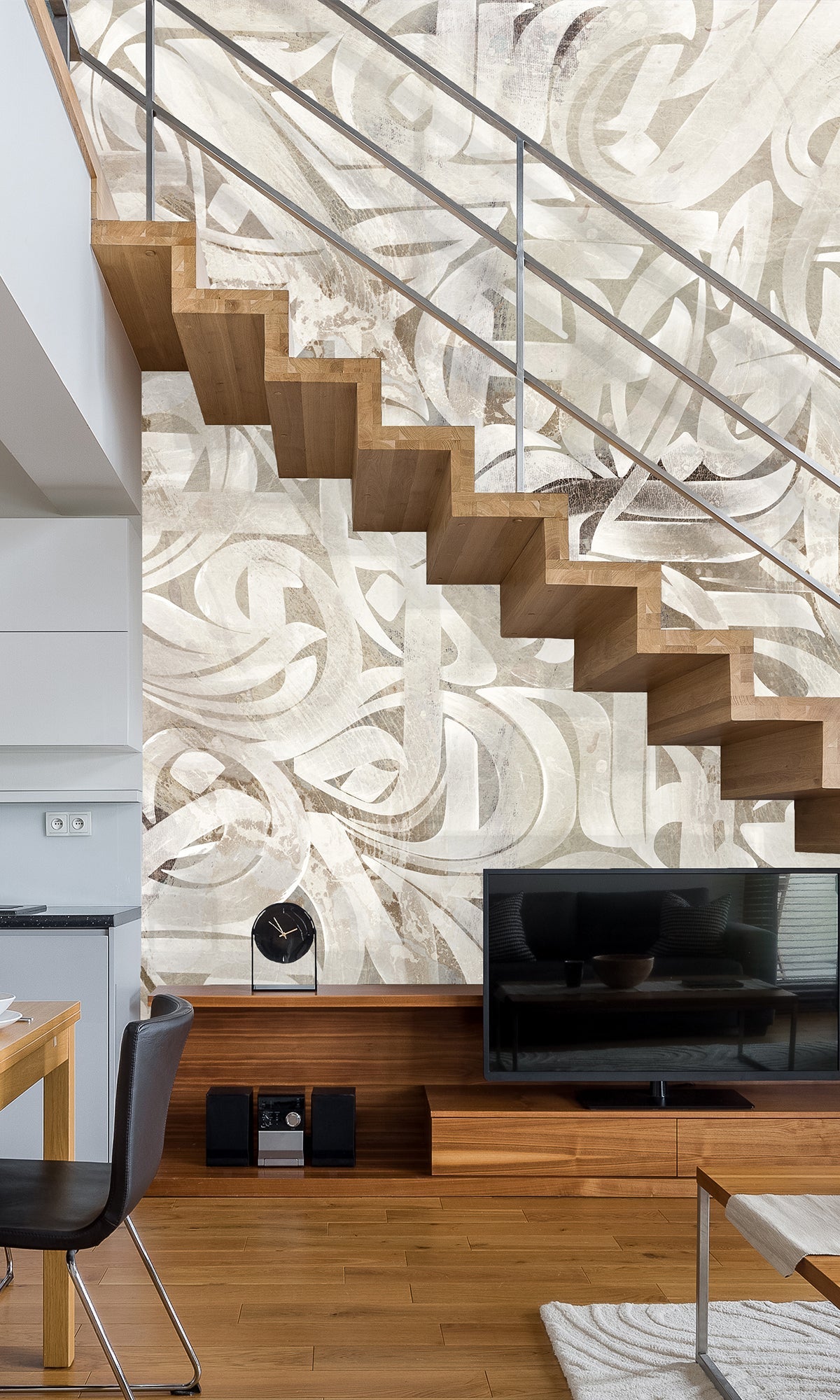 Give your space a fresh new look with this beautiful digital mural, featuring lively ribbons swirling together in a graceful arabesque pattern. The design mixes smooth, elegant curves with just the right amount of playful chaos, creating a dynamic and captivating vibe that adds depth and style to any room. Available in six premium materials and fully customizable to fit your style and space, this unique mural brings both energy and elegance to your walls.