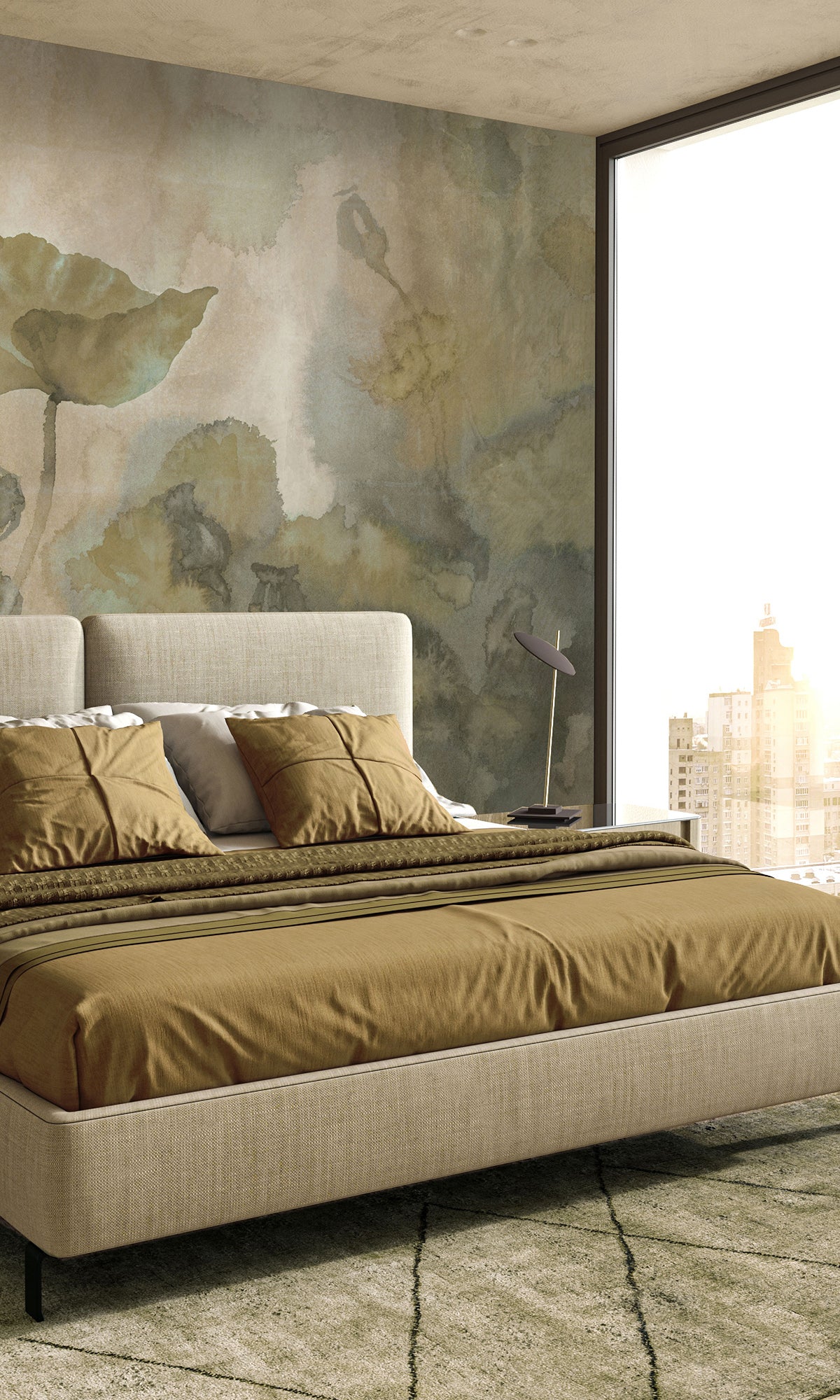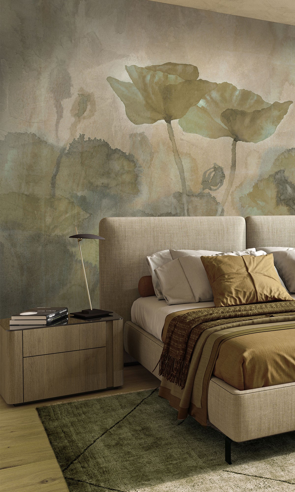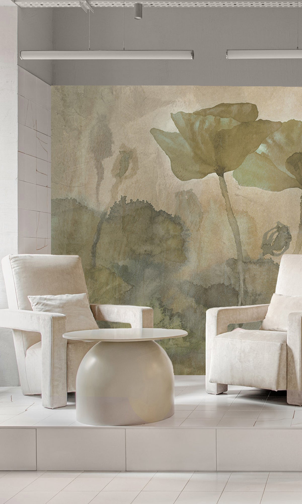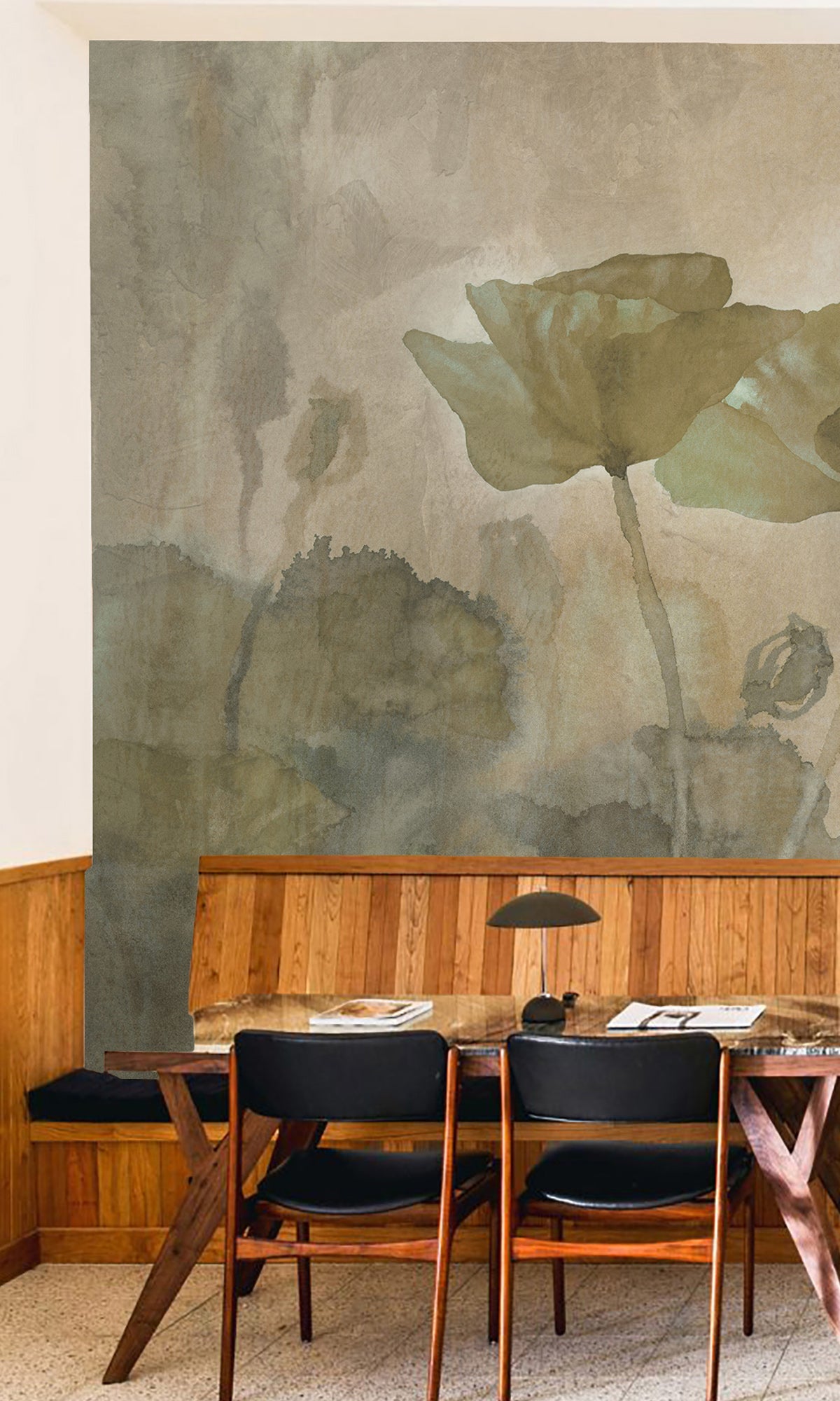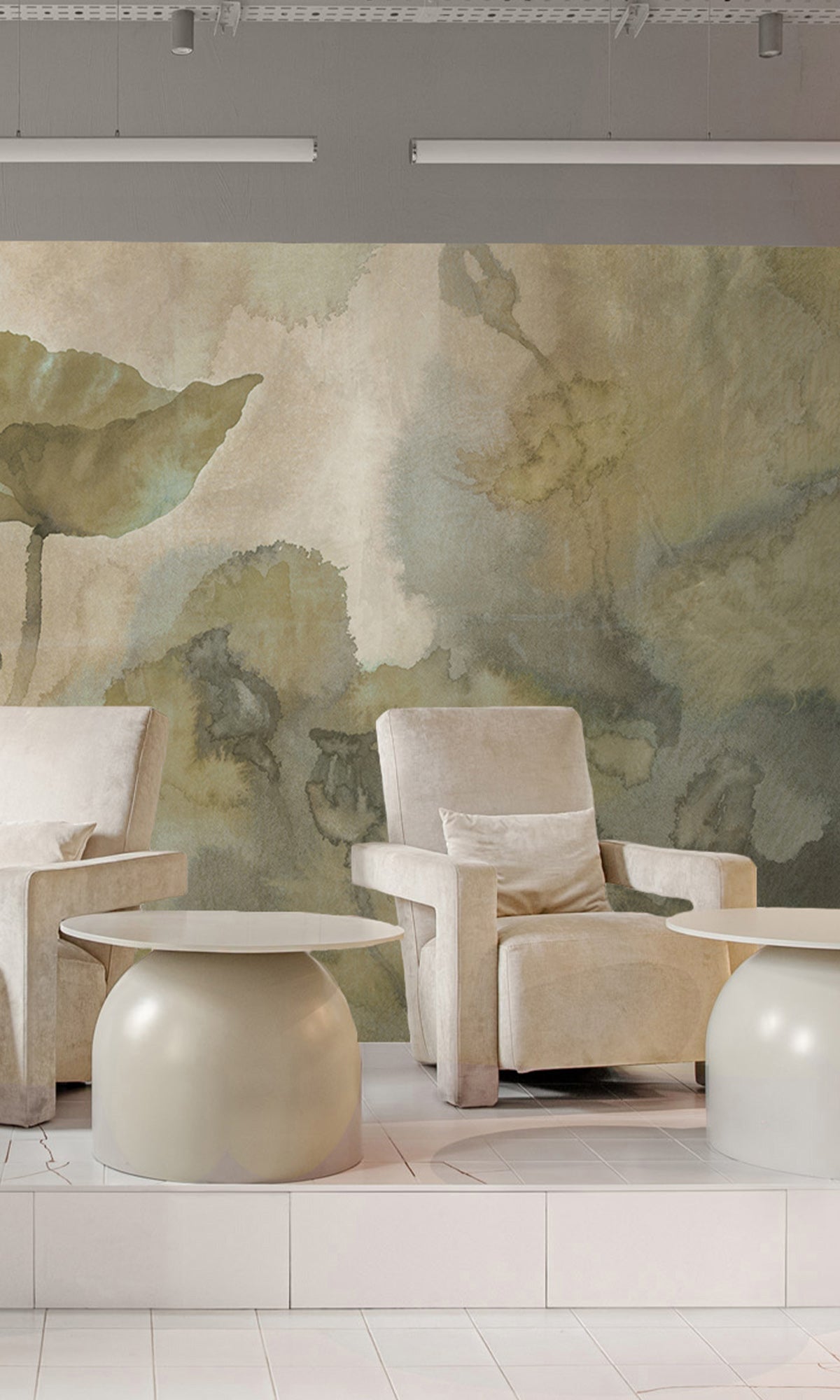 Step into serenity with this mesmerizing digital mural. a delicate watercolor interpretation of blooming lotus flowers rising through a soft, foggy backdrop. The fluid brushstrokes and gentle hues create a dreamlike atmosphere, casting an ethereal glow that instantly calms the space it adorns. Whether used in a bedroom, spa, or tranquil corner of the home, this mural invites quiet reflection and effortless elegance.