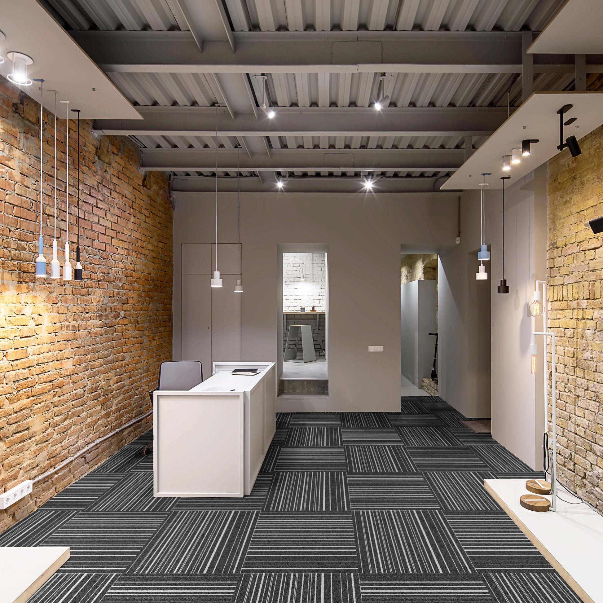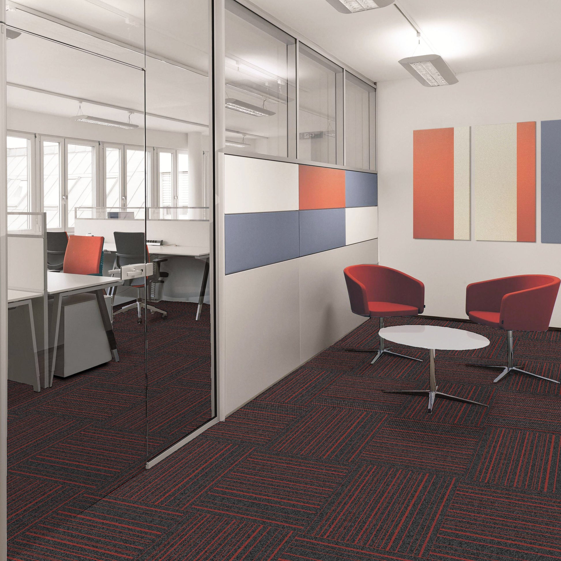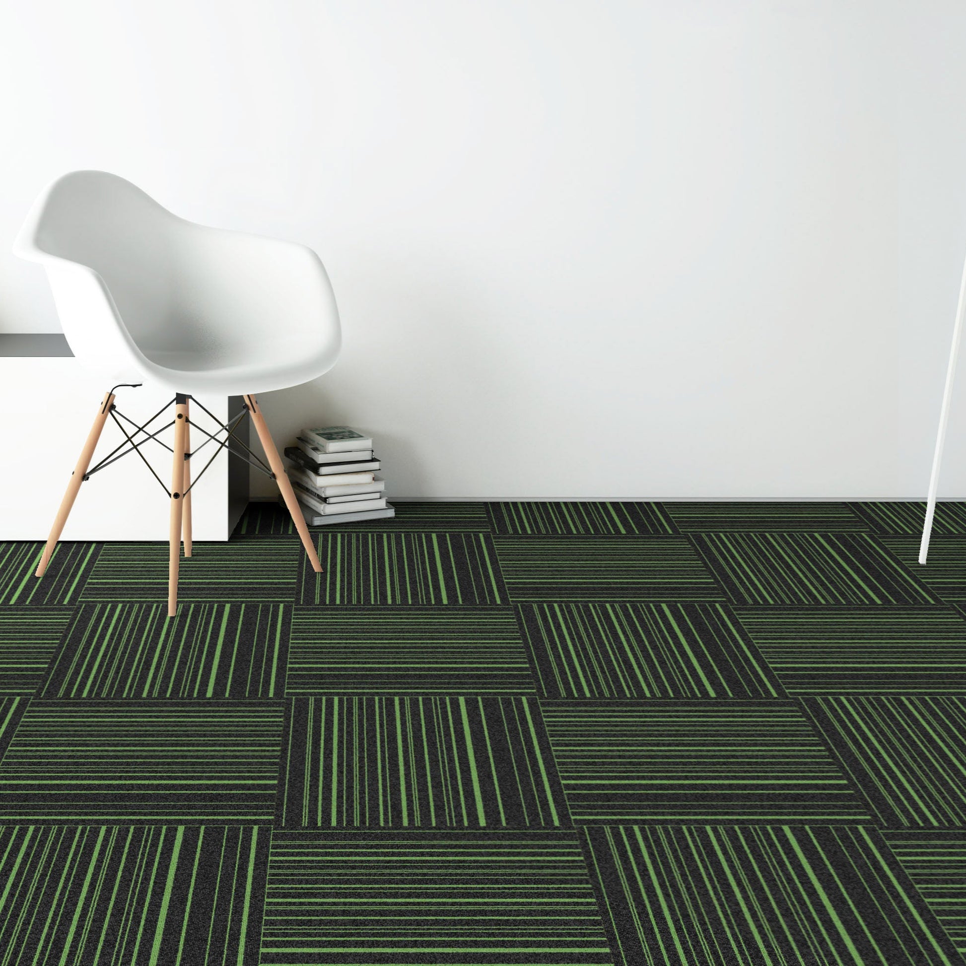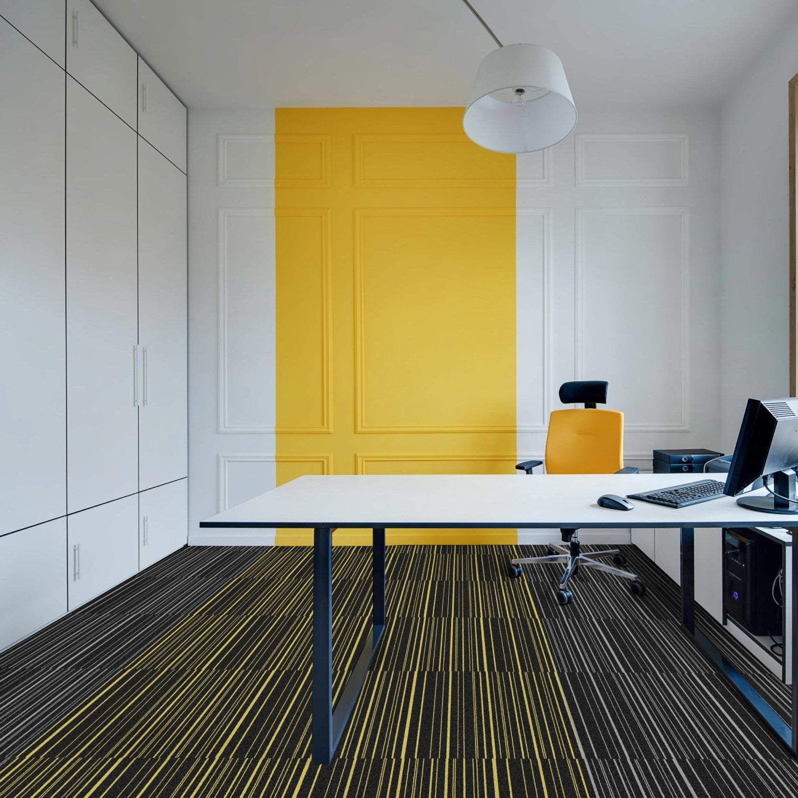 The Merge Collection carpet tile is a stylish and modern flooring solution, designed to add a contemporary touch to commercial and office spaces. With its elegant striped pattern and combination of dark and vibrant tones with subtle contrast, it enhances depth and sophistication in any setting.