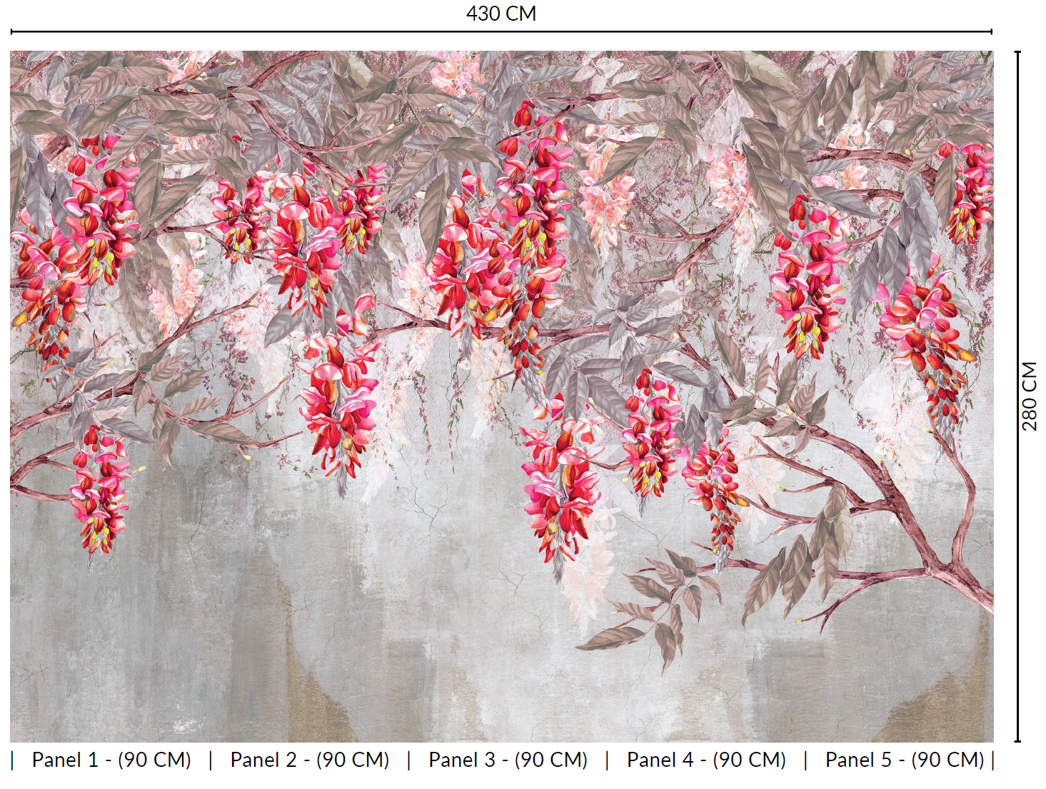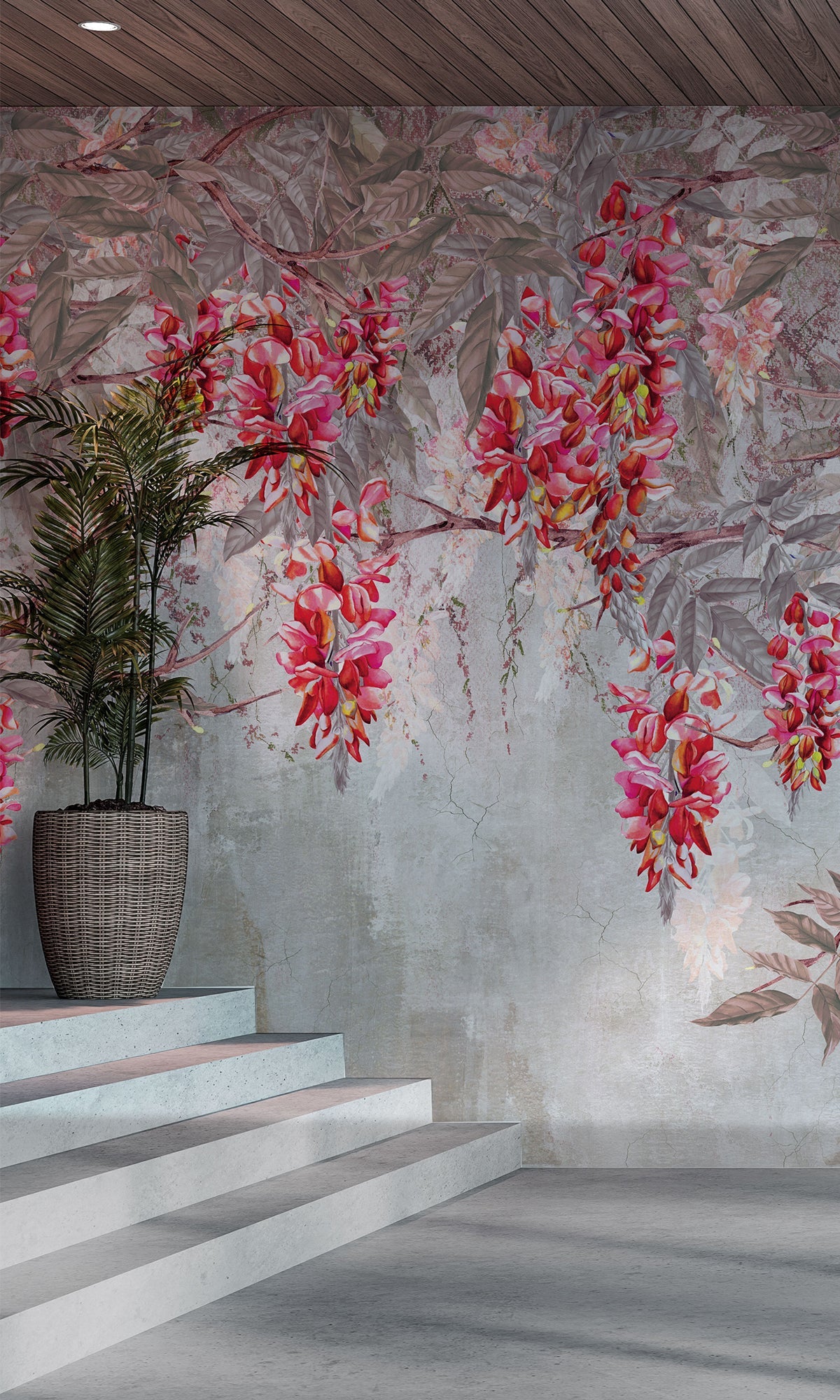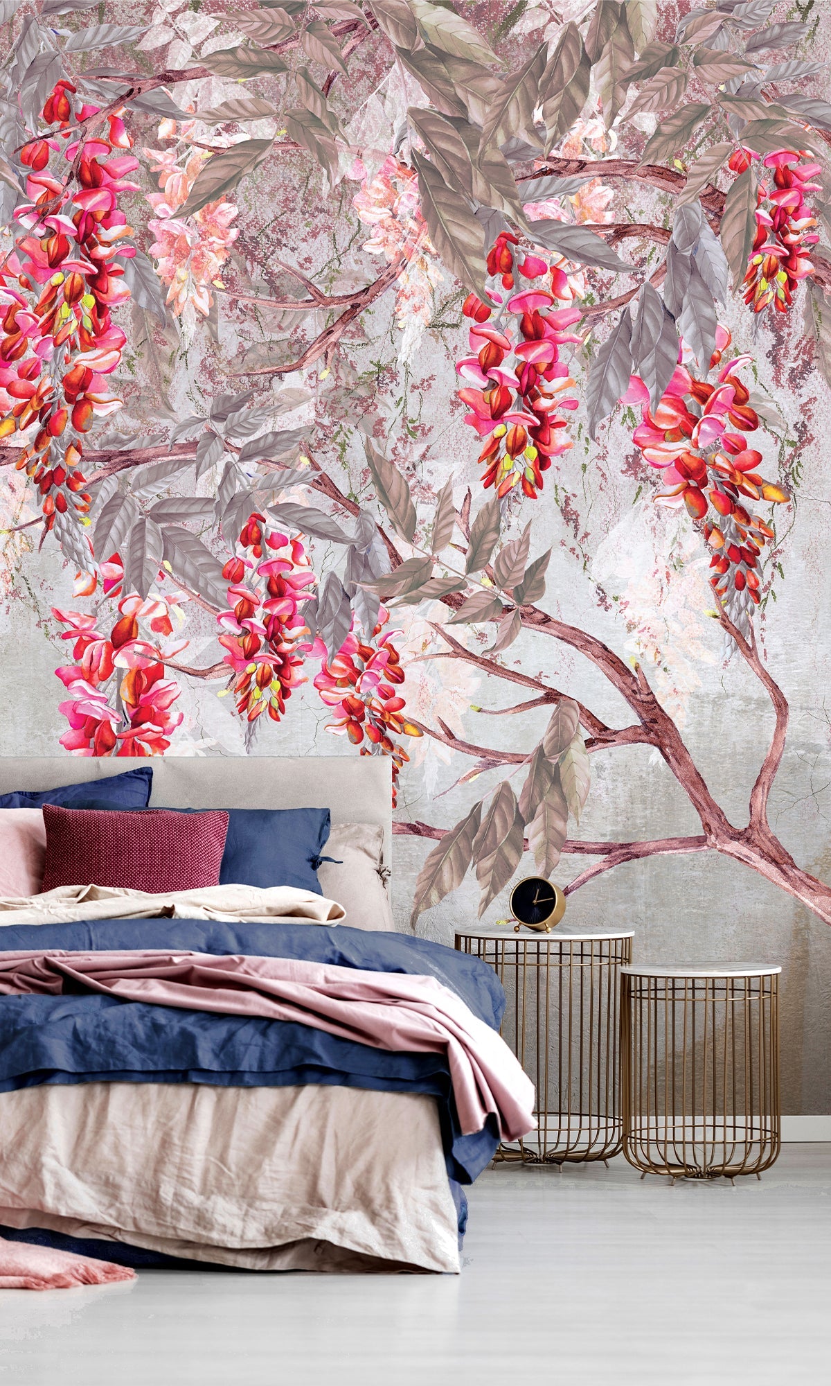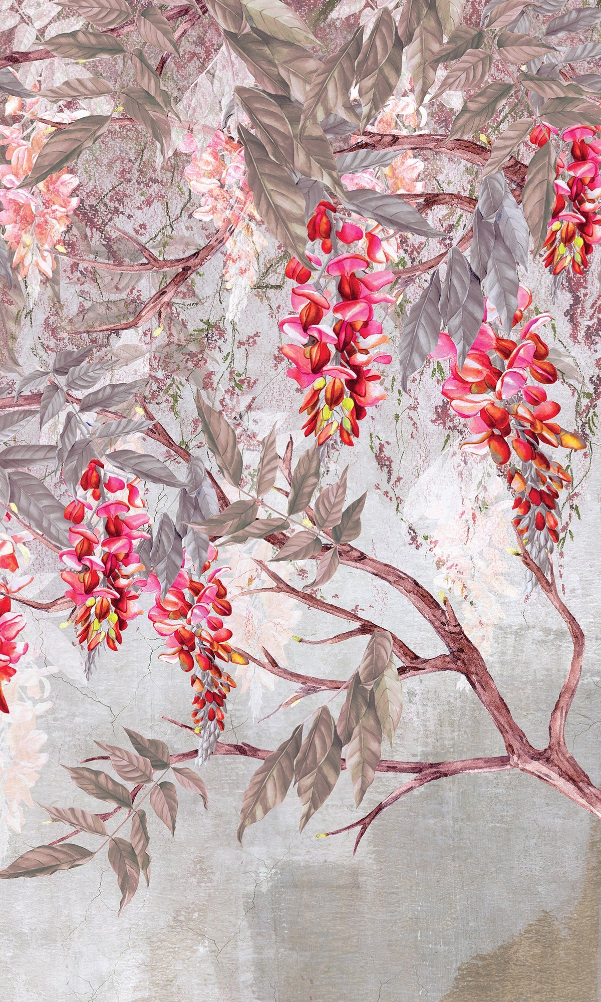 Let your walls bloom with quiet drama and natural beauty. This digital mural features a delicate canopy of acacia branches, their blossoms cascading gently over a backdrop of silhouetted mountains. The layered composition brings a vibrant yet soothing energy to the space, like standing beneath flowering trees at sunset, with the landscape quietly unfolding beyond. It's a graceful blend of nature and artistry, perfect for adding depth and color to bedrooms, living rooms, or serene workspaces. Printed on six premium-quality materials and fully customizable to suit your style, this exclusive mural transforms any room into a peaceful retreat with a vivid, organic soul.