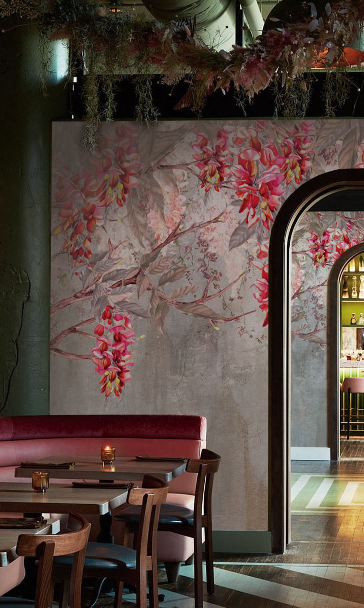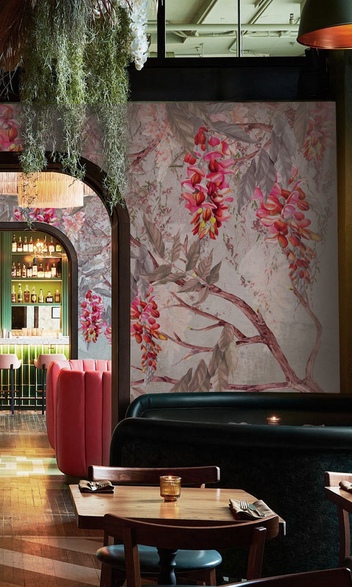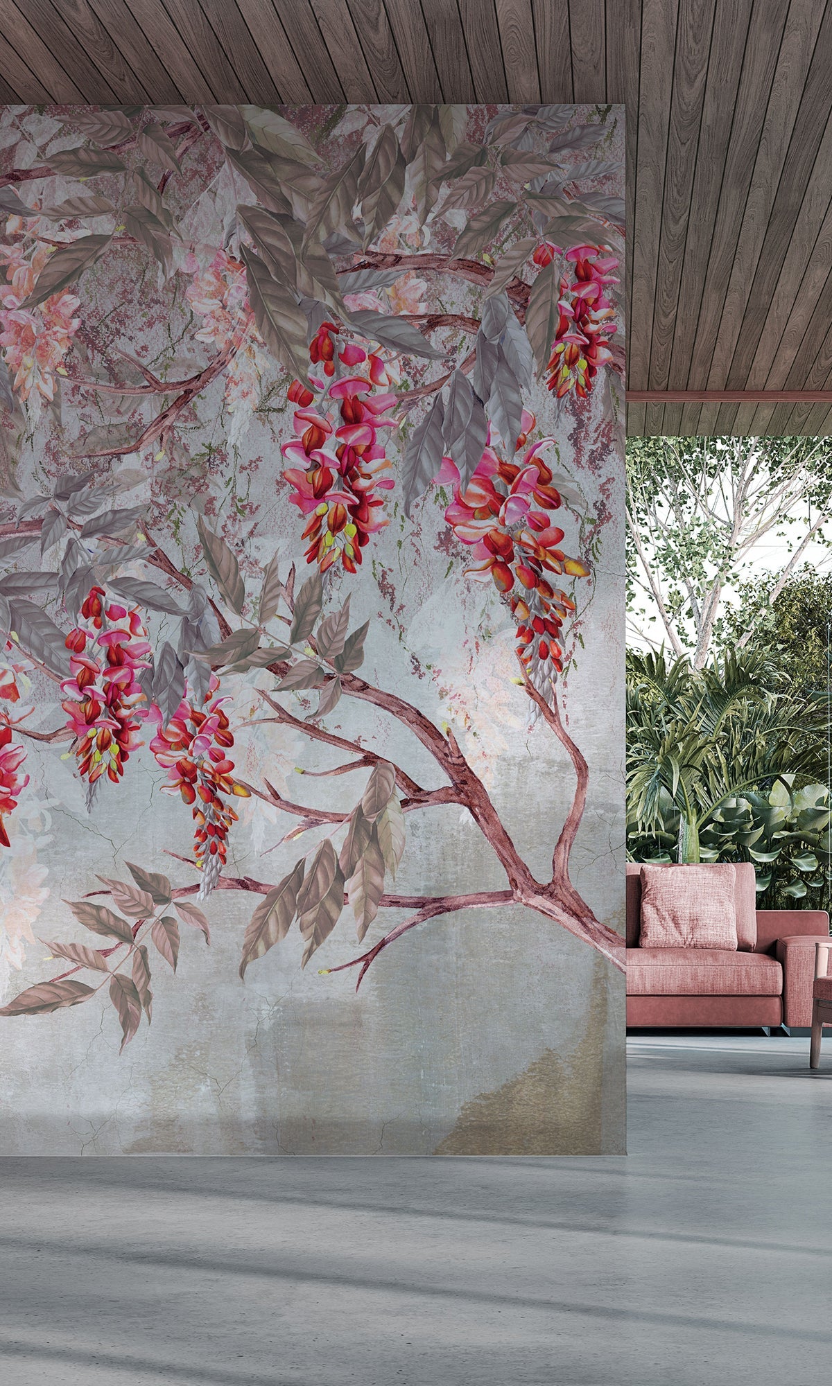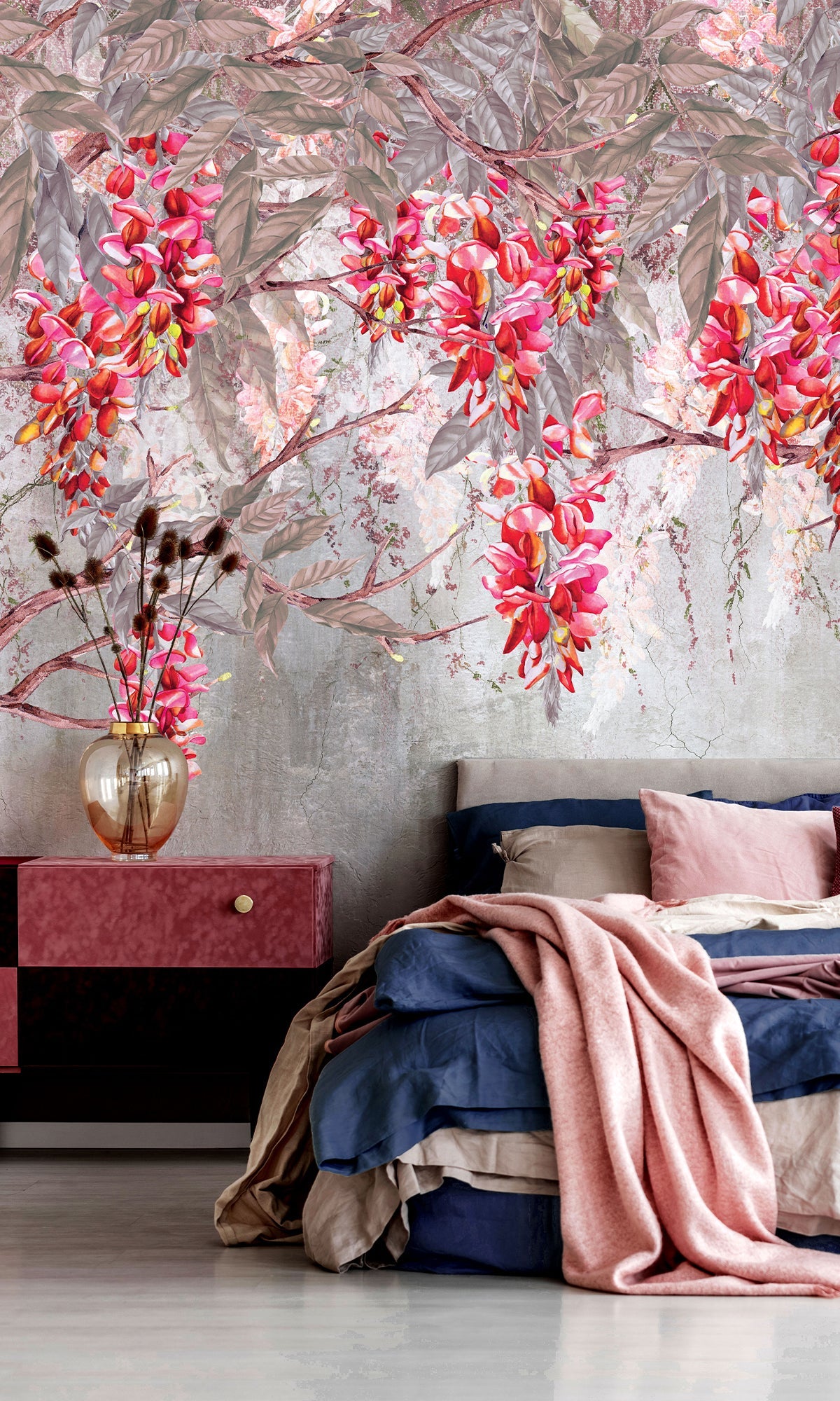 Let your walls bloom with quiet drama and natural beauty. This digital mural features a delicate canopy of acacia branches, their blossoms cascading gently over a backdrop of silhouetted mountains. The layered composition brings a vibrant yet soothing energy to the space, like standing beneath flowering trees at sunset, with the landscape quietly unfolding beyond. It's a graceful blend of nature and artistry, perfect for adding depth and color to bedrooms, living rooms, or serene workspaces. Printed on six premium-quality materials and fully customizable to suit your style, this exclusive mural transforms any room into a peaceful retreat with a vivid, organic soul.
