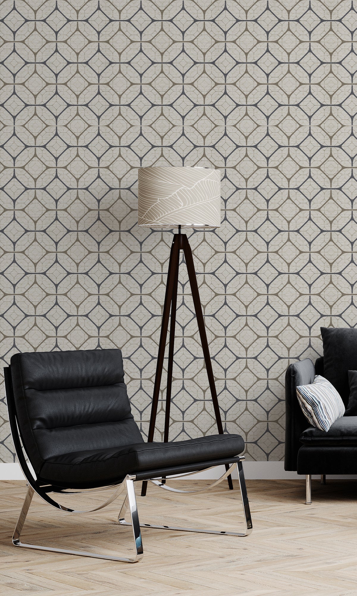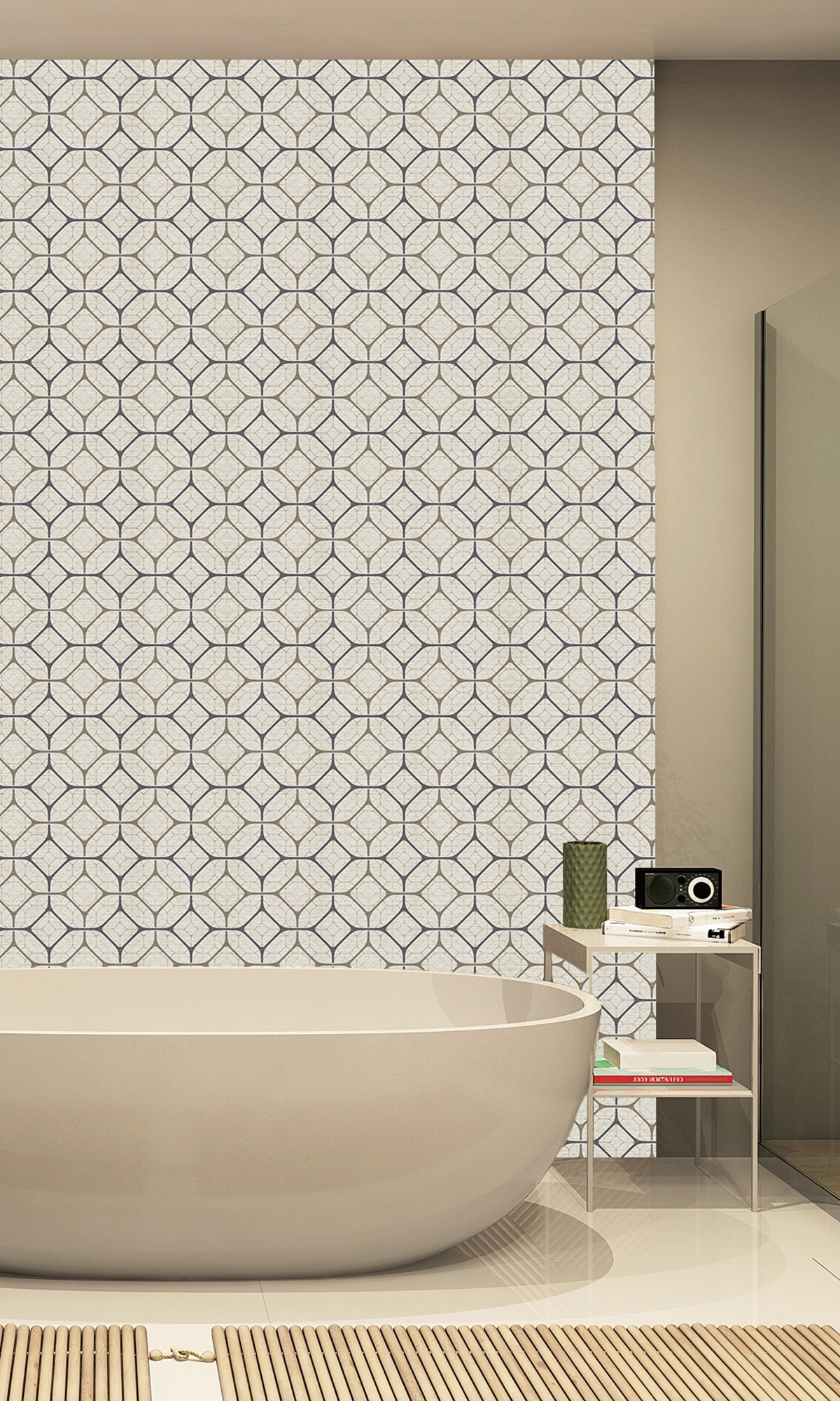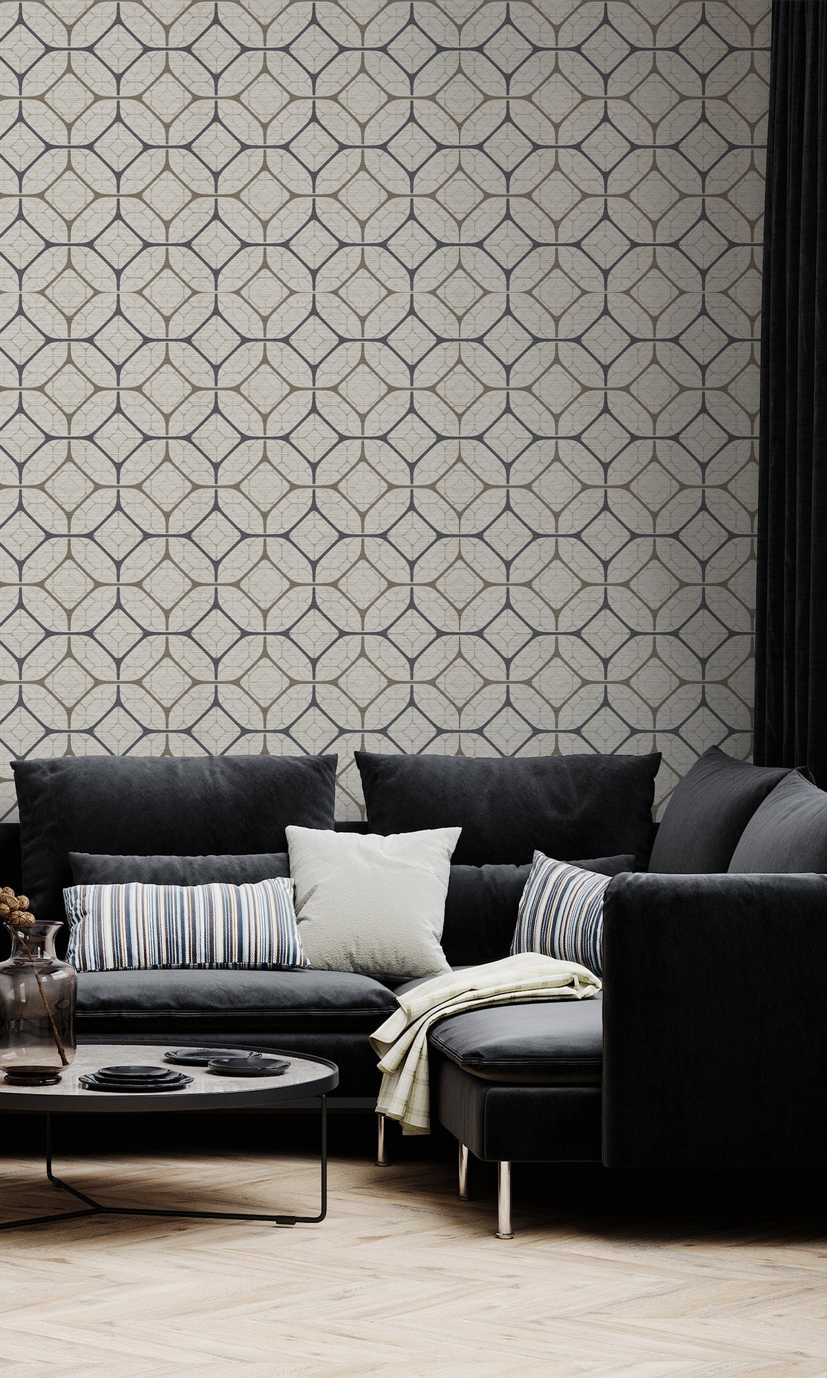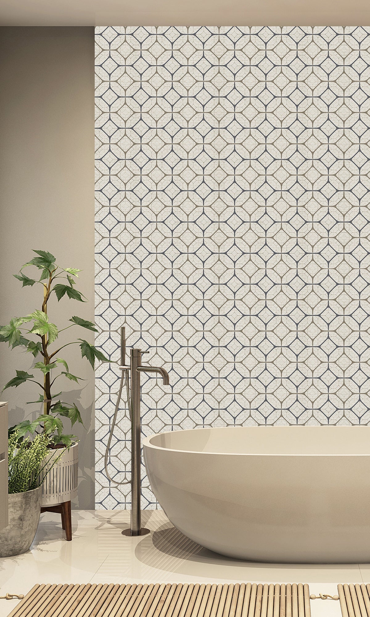 Taupe Tiled Geometric Ogee Murals MG1721 - Nature's Weave